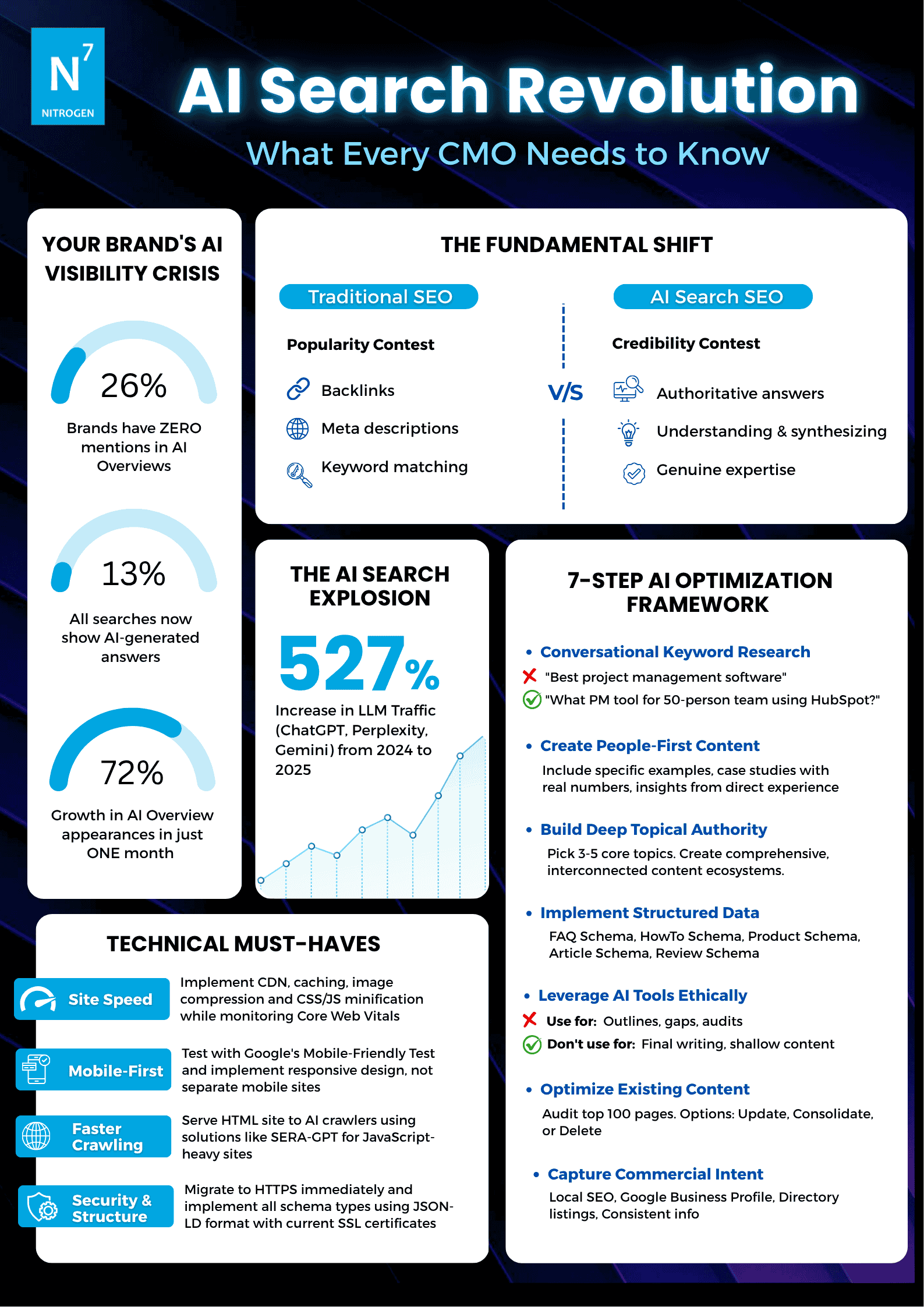 We're at an inflection point. The brands that adapt now—that build genuine authority, implement proper structured data, create comprehensive content, and establish human credibility—will dominate AI search for years.